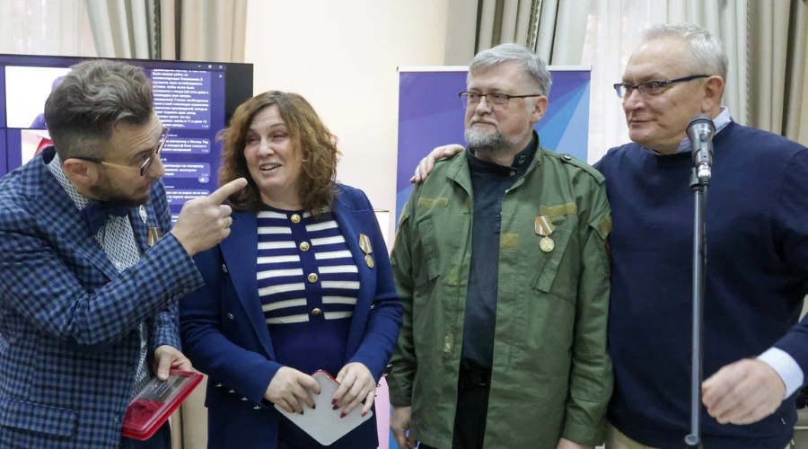 На заседании эксперт премии, писатель Даниэль Орлов вручил медали «За содействие СВО» коллегам — поэтам Анне Поспеловой и Арсению Ли.